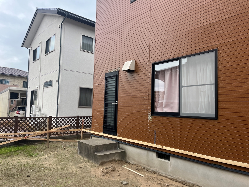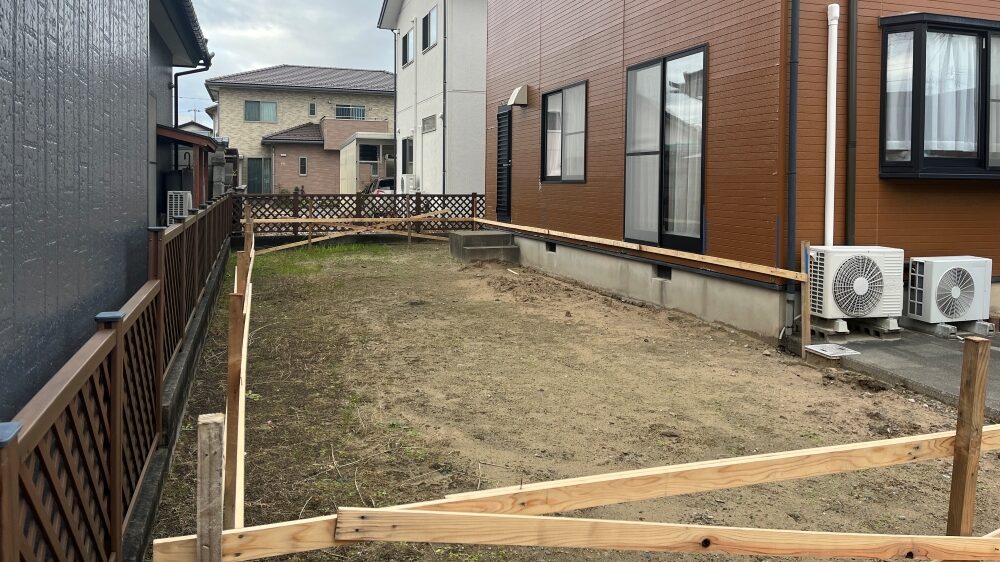 丁張りという、建物の外側に糸を張るための囲いをつける作業が行われました。