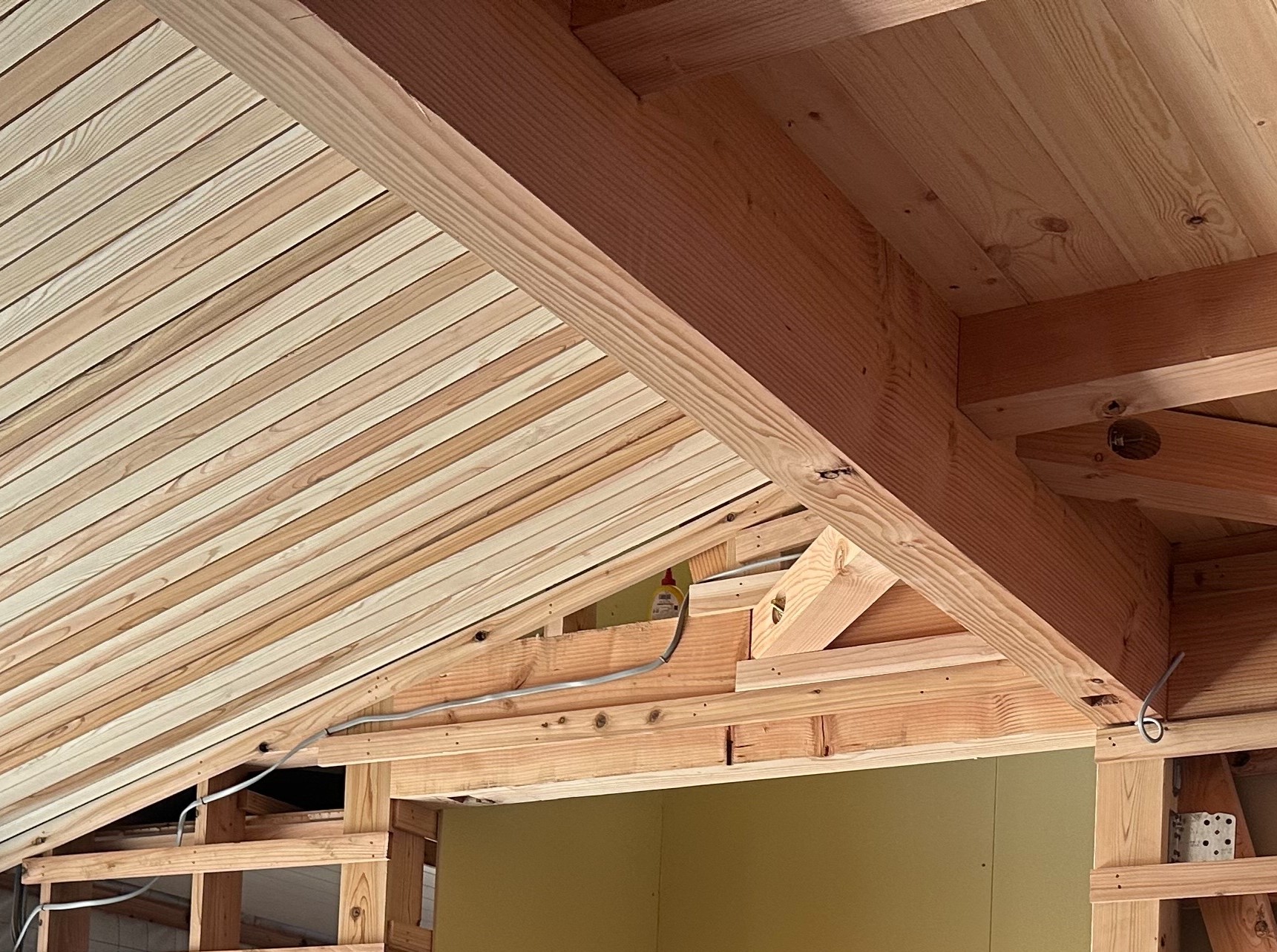二階部分の天井はK様夫婦と一緒に塗装を行いました!