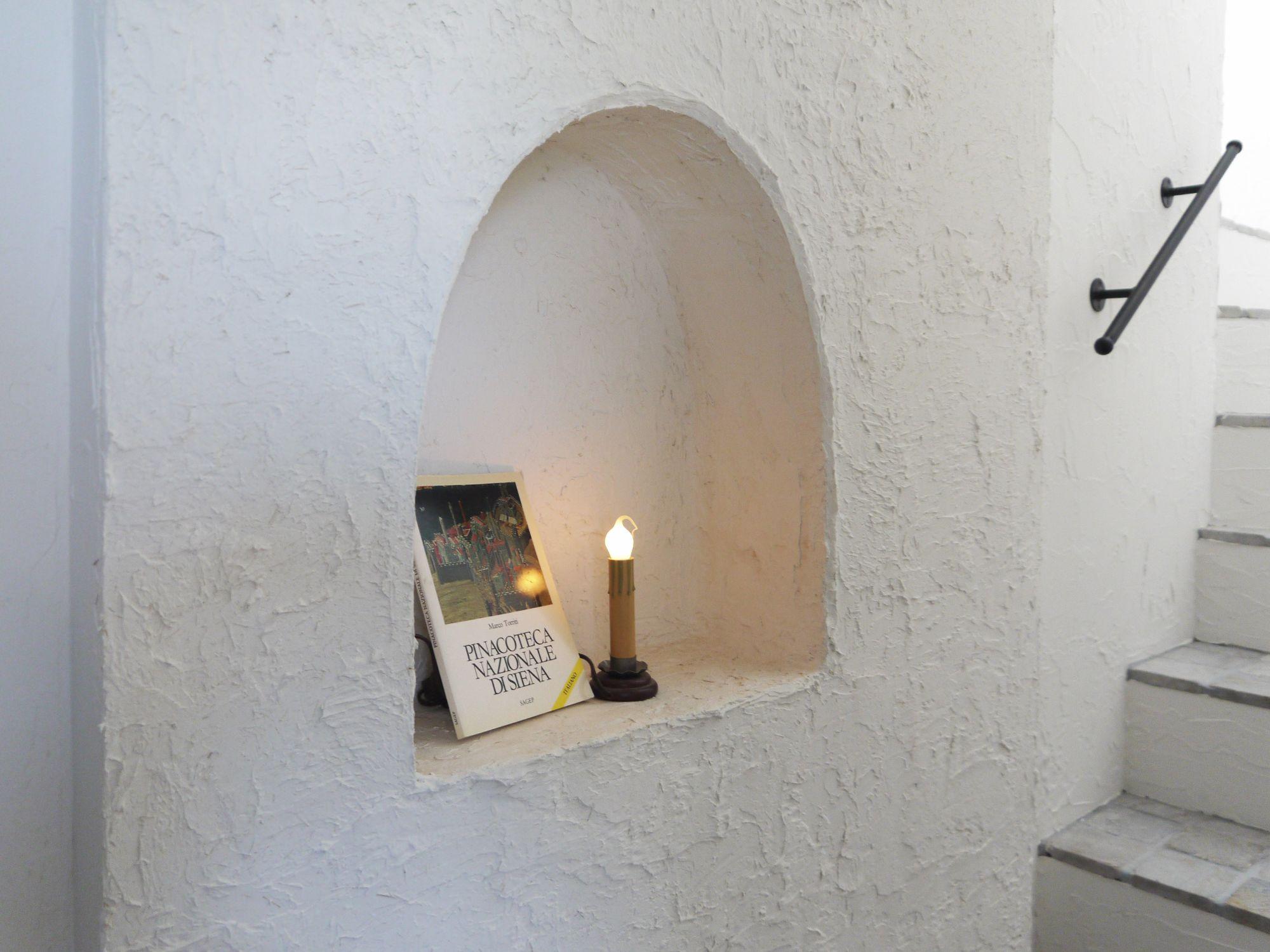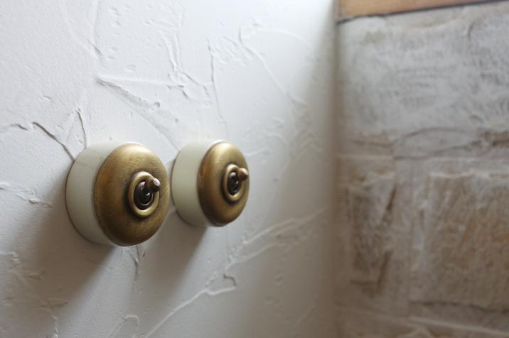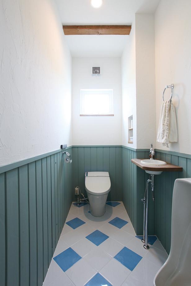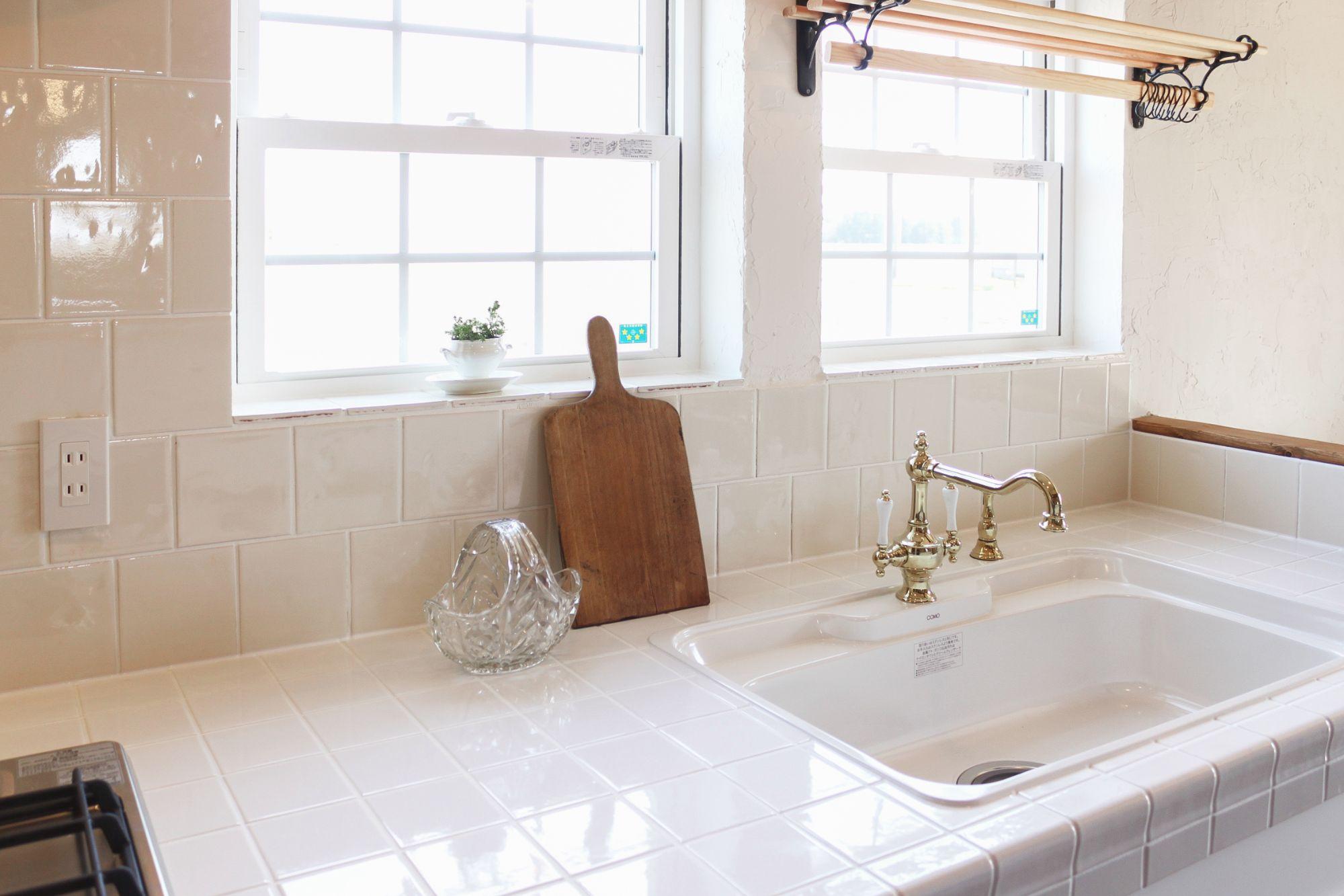 スペイン製のシャンデリア、フランス製のキャビネットなど、自分たちが愛する様々なアイテムを独自に購入し、インテリアをヨーロピアンテイストにコーディネート。また、タイルや木材、ドアや建具、ドアノブに至るまで、ヴィンテージ感のある材料を自らチョイス。さらに塗り壁もあえて「ダメージ感のある風合い」にこだわりオーナー様自らが手間ひまをかけて塗り込んだという。