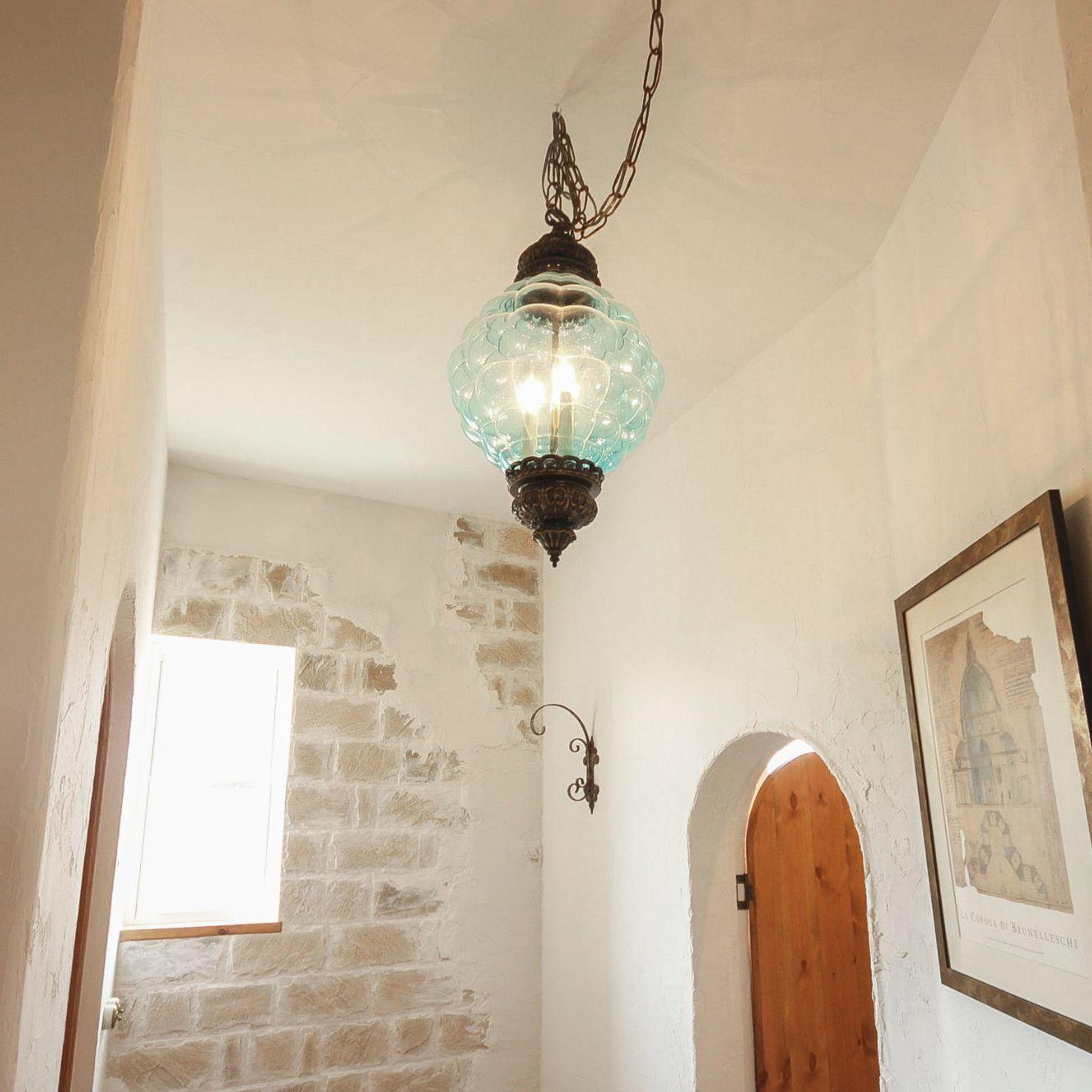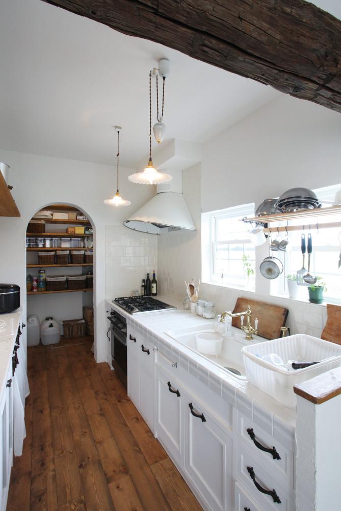 スペイン製のシャンデリア、フランス製のキャビネットなど、自分たちが愛する様々なアイテムを独自に購入し、インテリアをヨーロピアンテイストにコーディネート。また、タイルや木材、ドアや建具、ドアノブに至るまで、ヴィンテージ感のある材料を自らチョイス。さらに塗り壁もあえて「ダメージ感のある風合い」にこだわりオーナー様自らが手間ひまをかけて塗り込んだという。