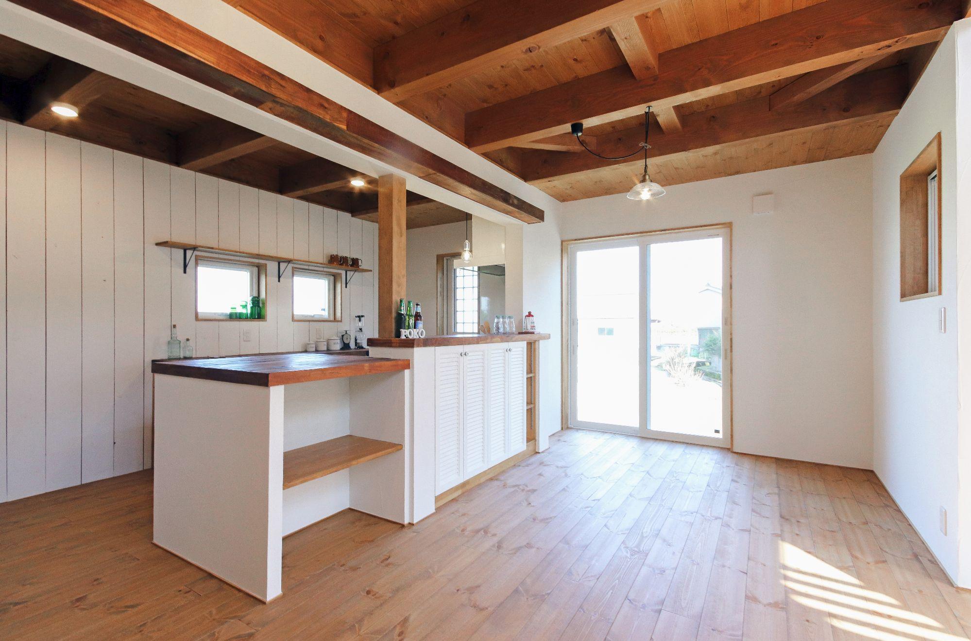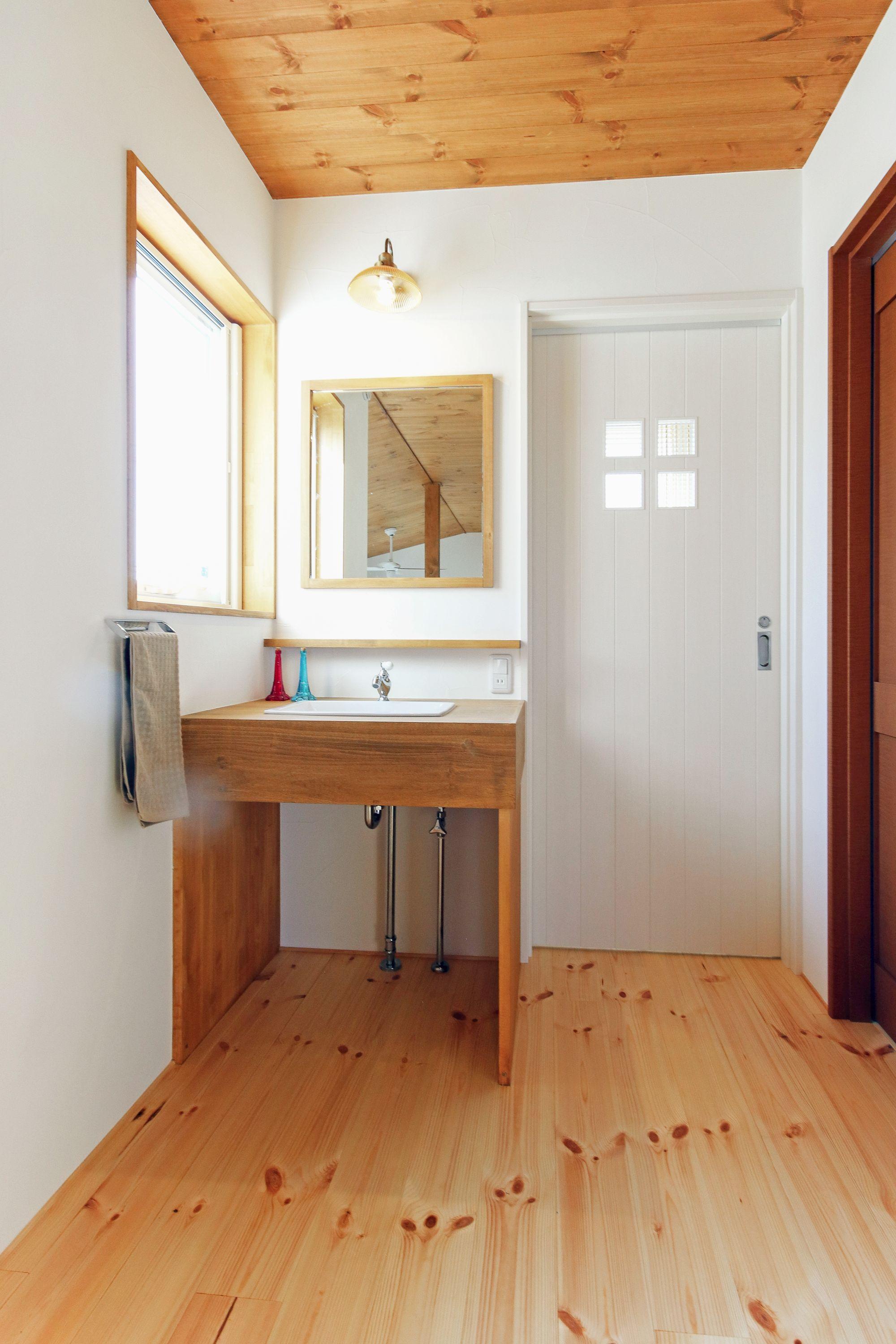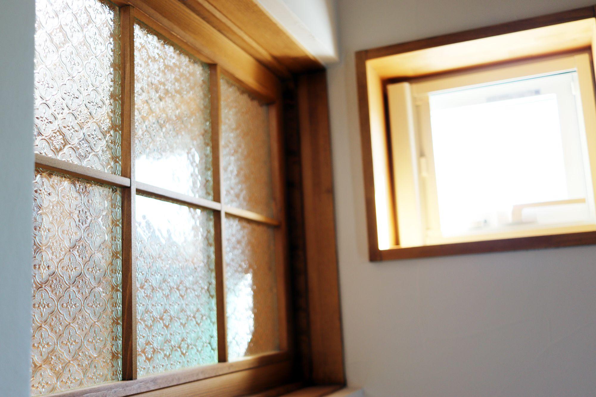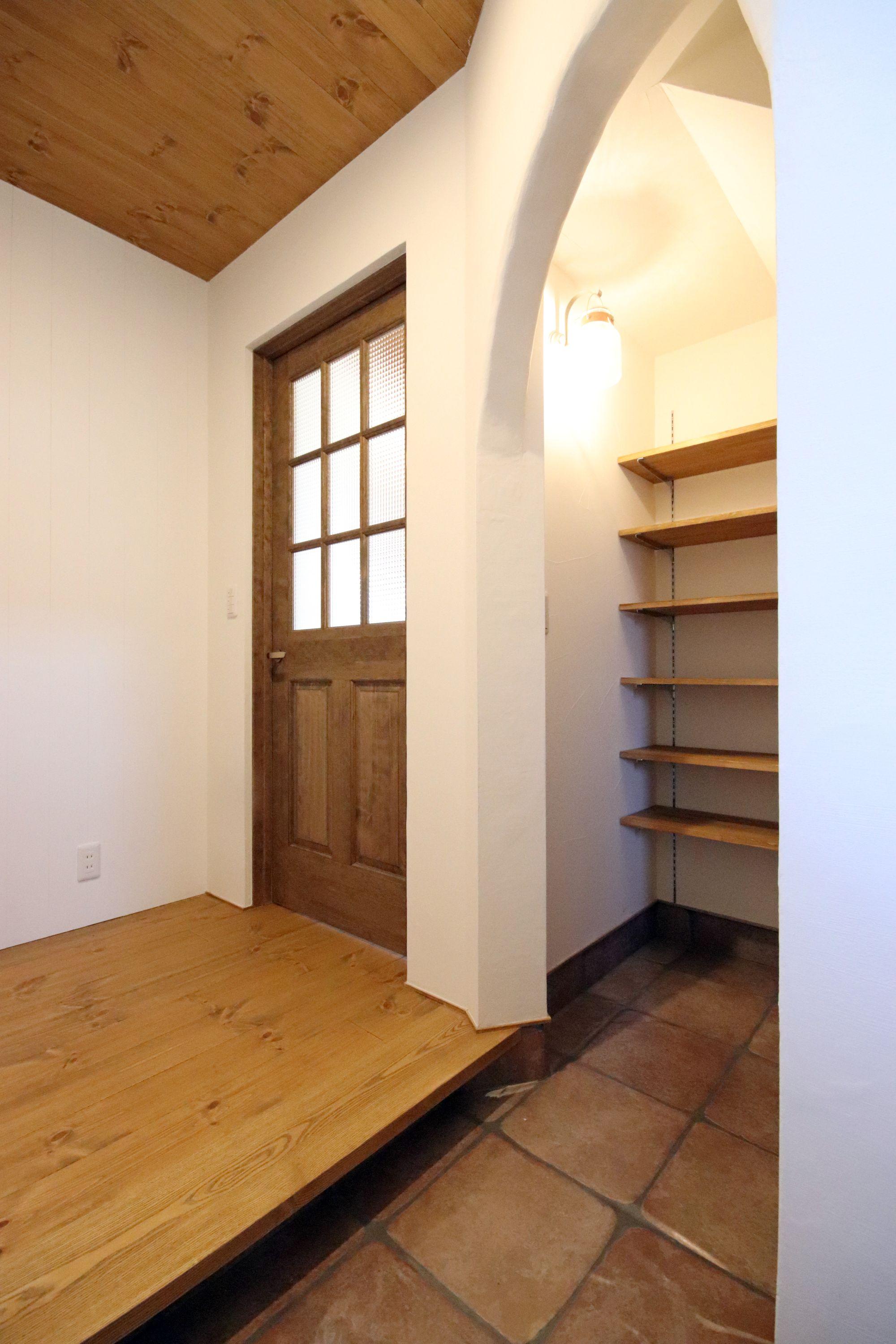 まあるいRの下がり壁やガラスの付いたかわいいドア