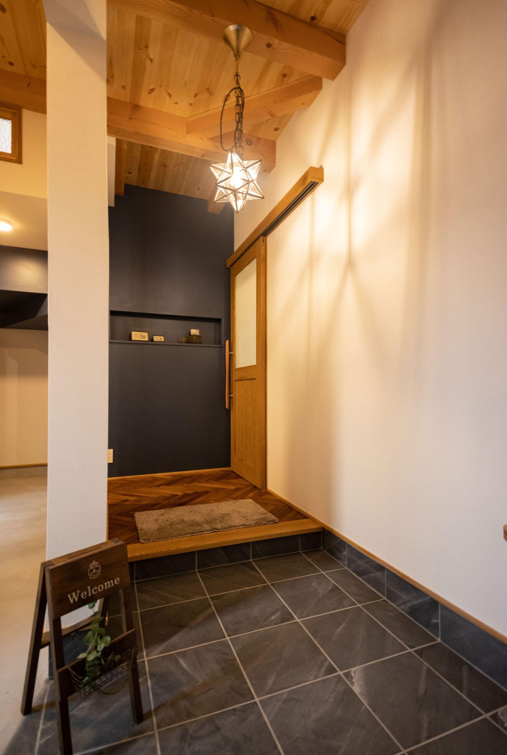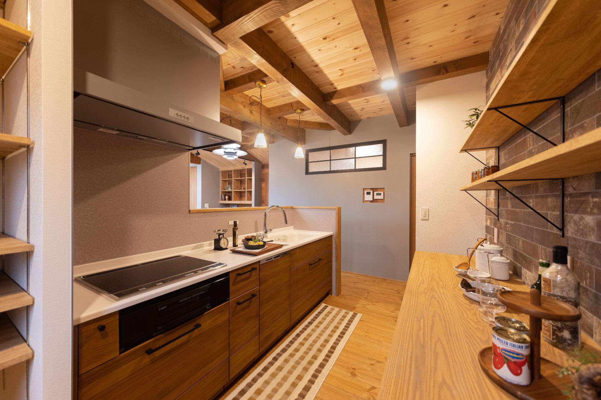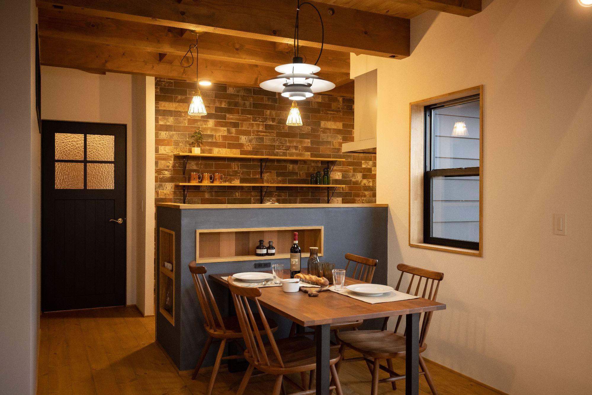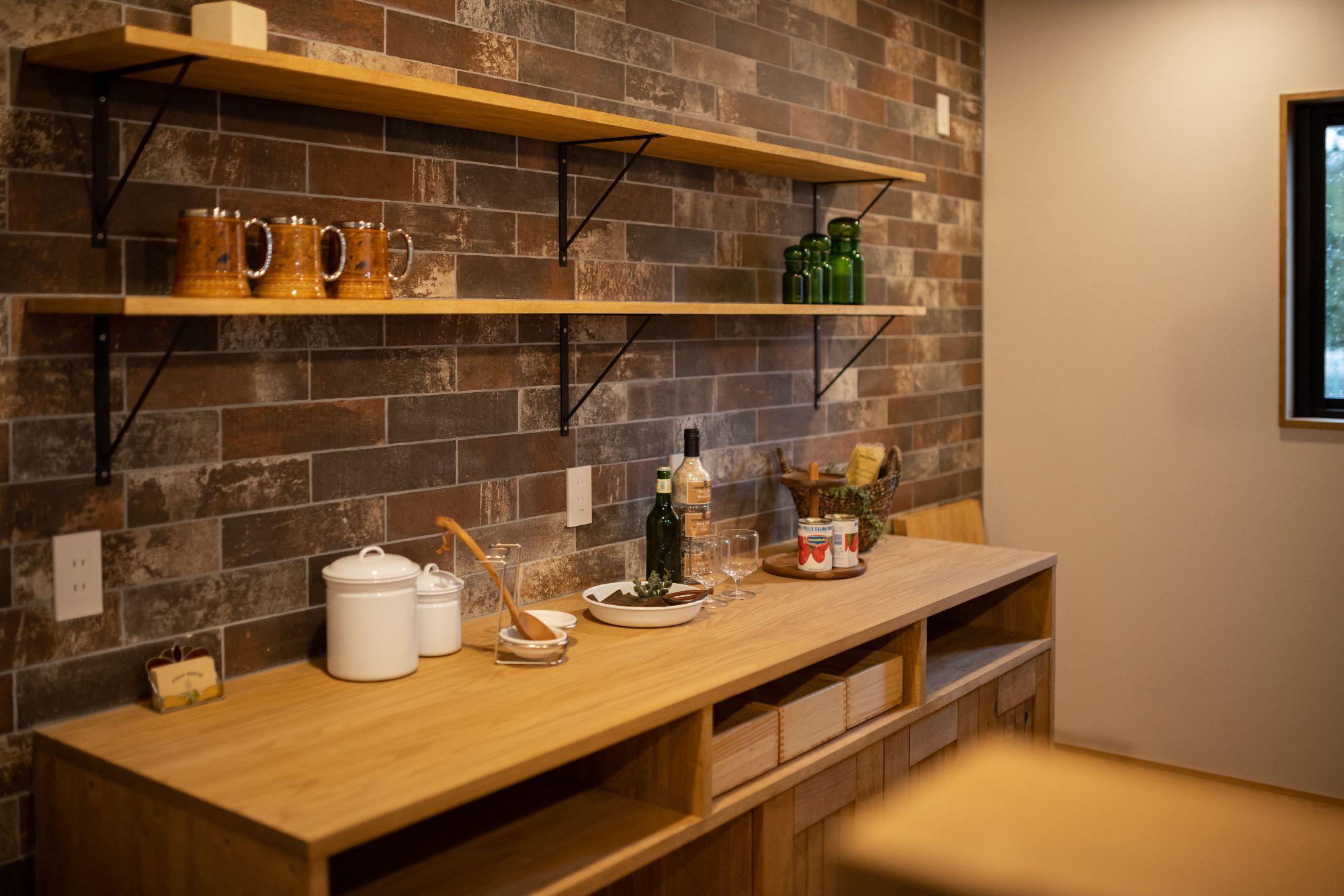 キッチンの壁のペイントや玄関のレンガ張りなどは、
