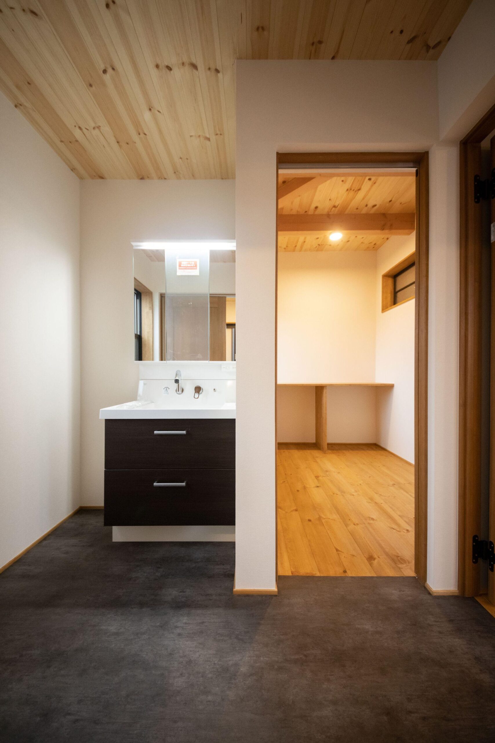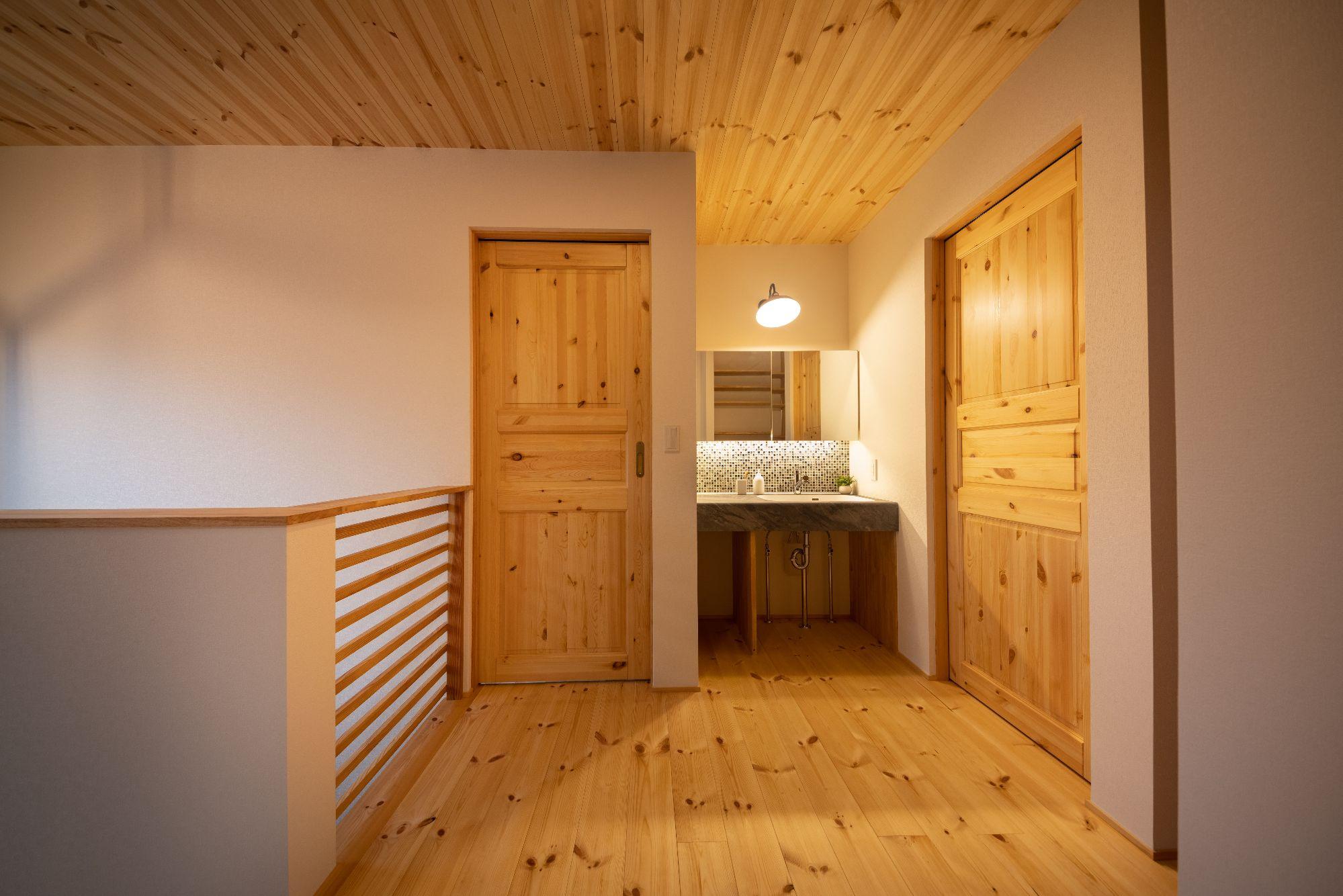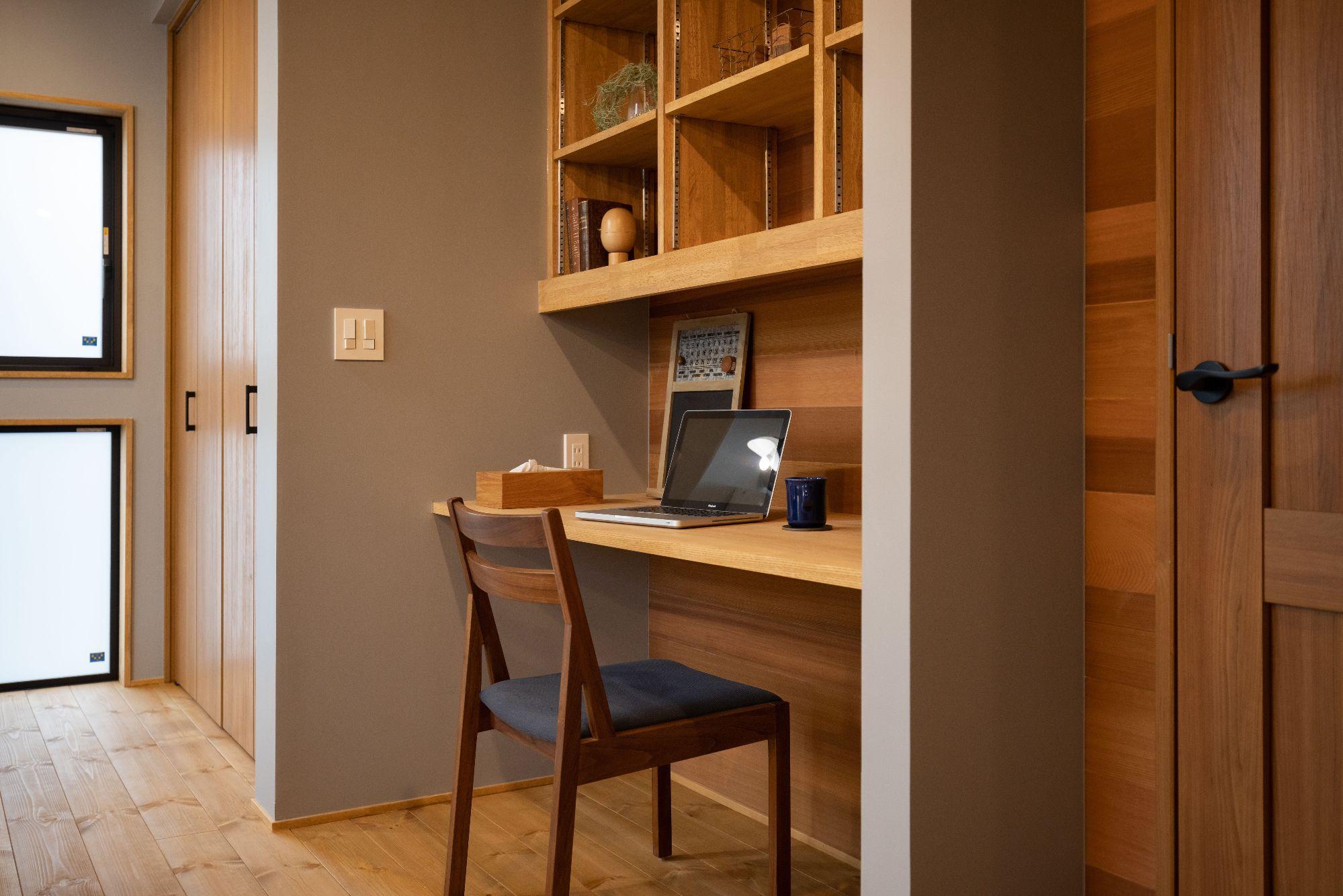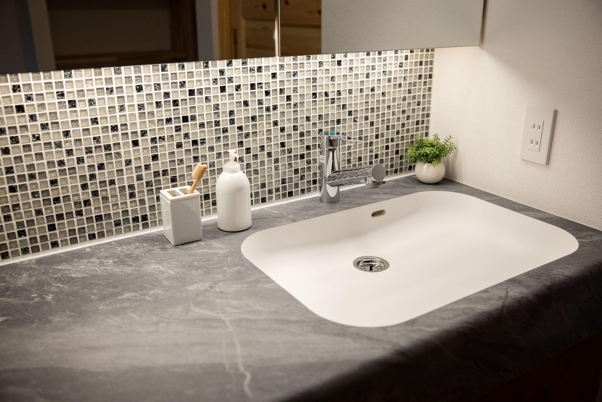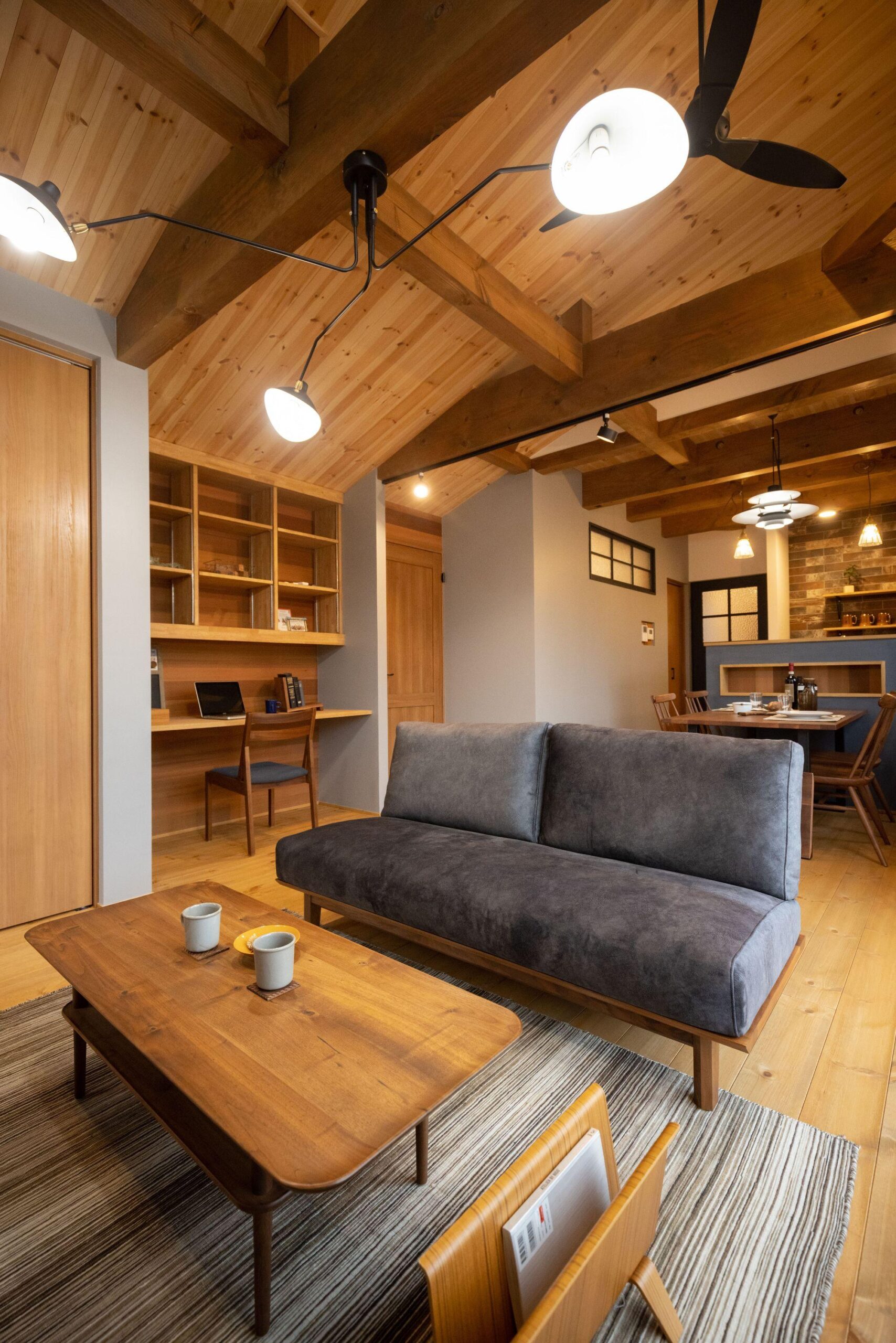 キッチンの壁のペイントや玄関のレンガ張りなどは、