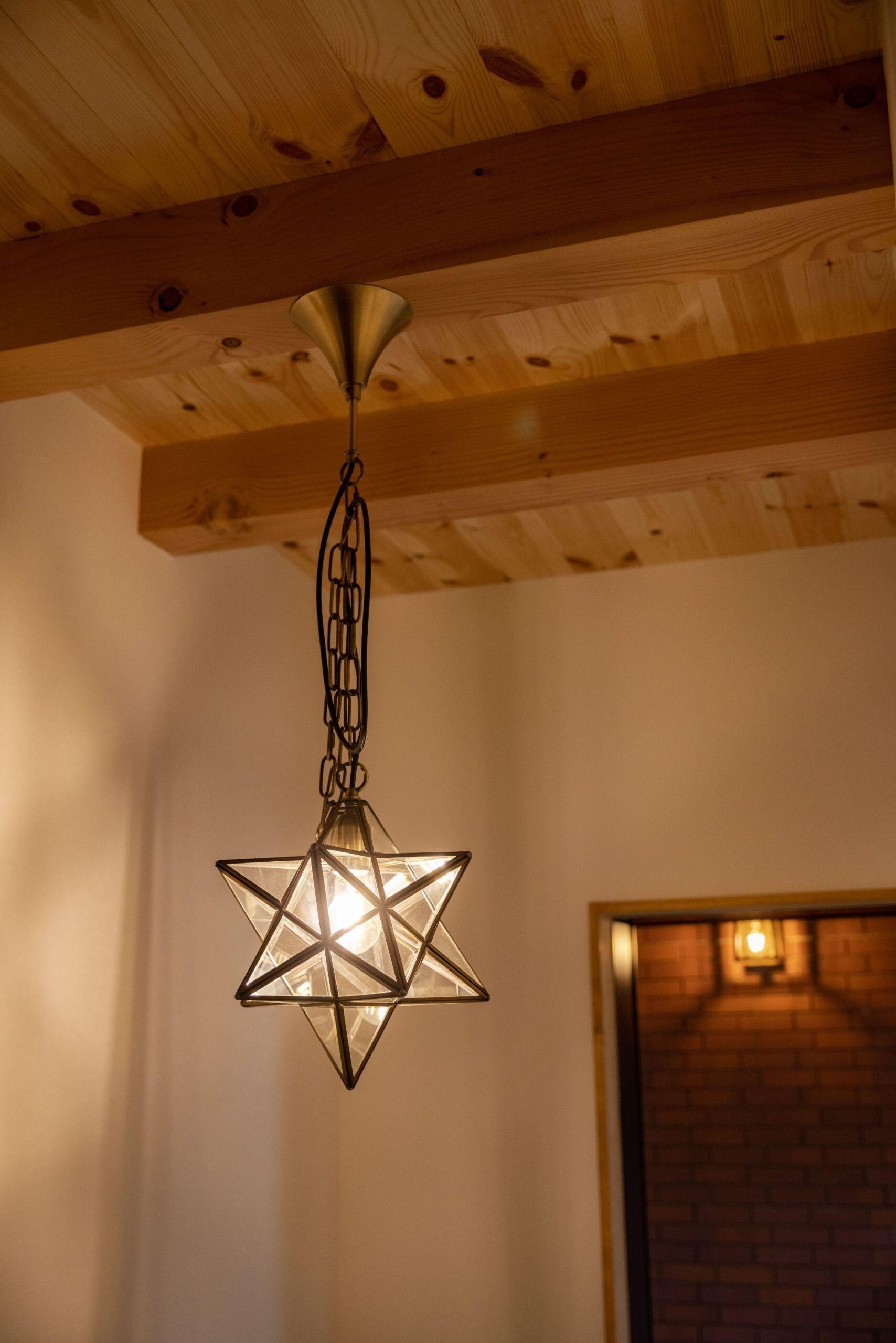キッチンの壁のペイントや玄関のレンガ張りなどは、