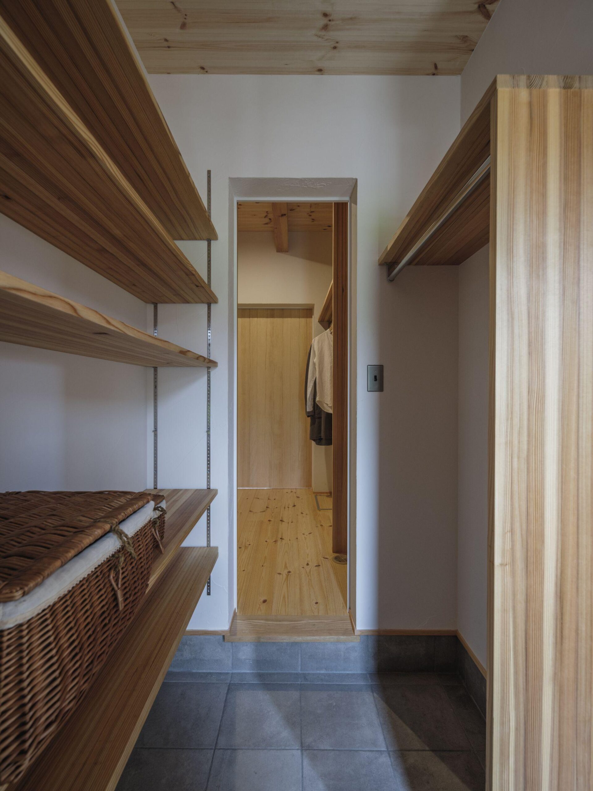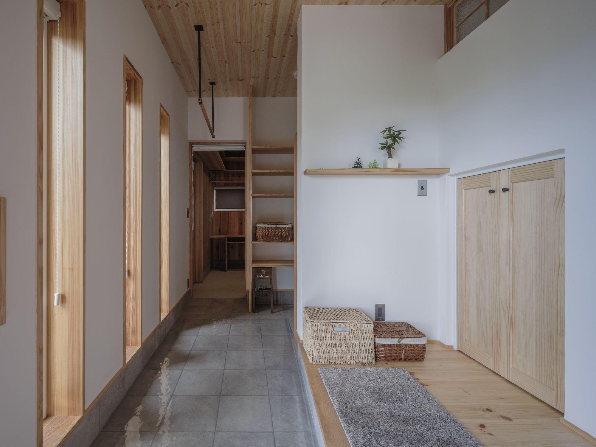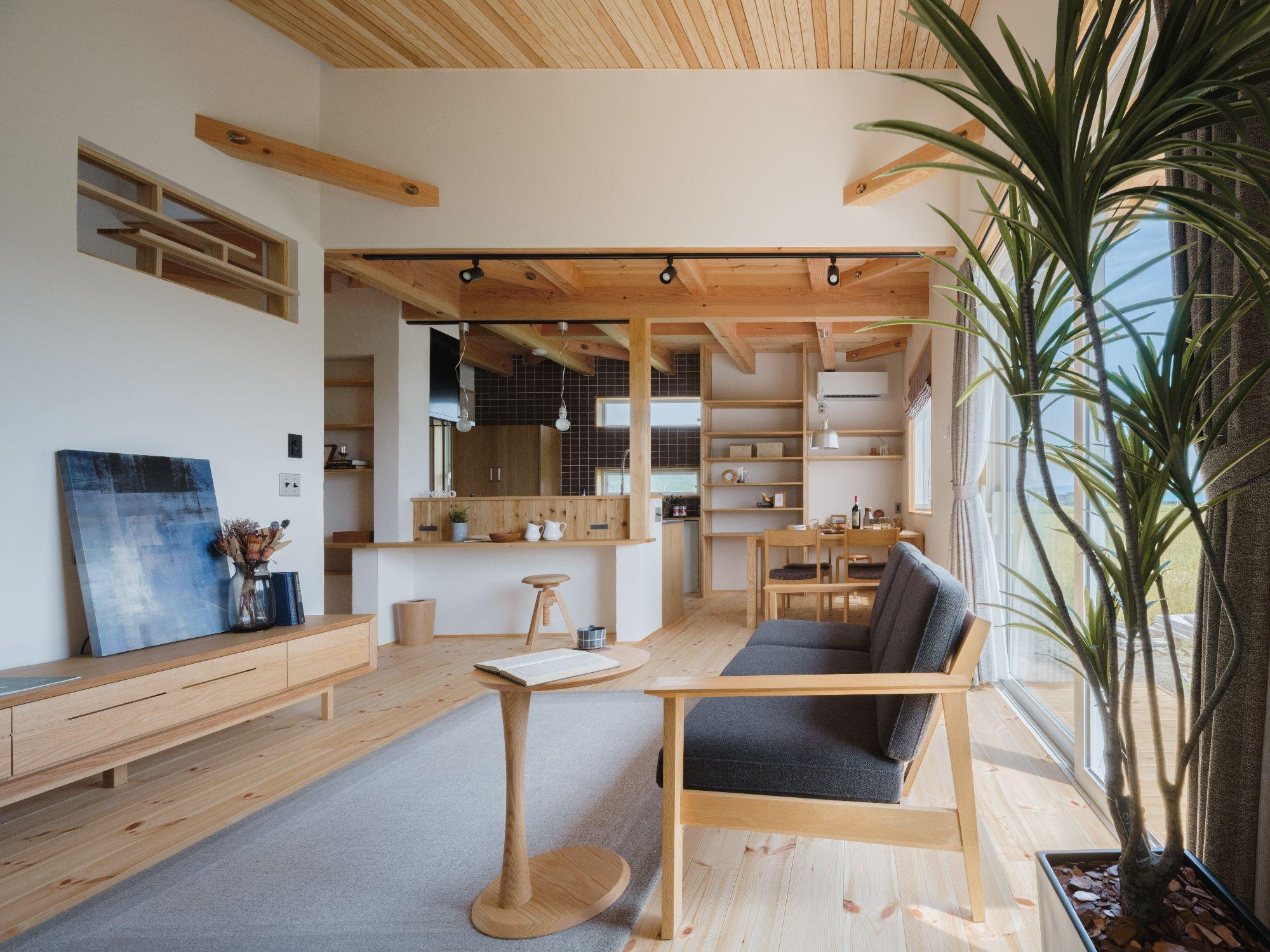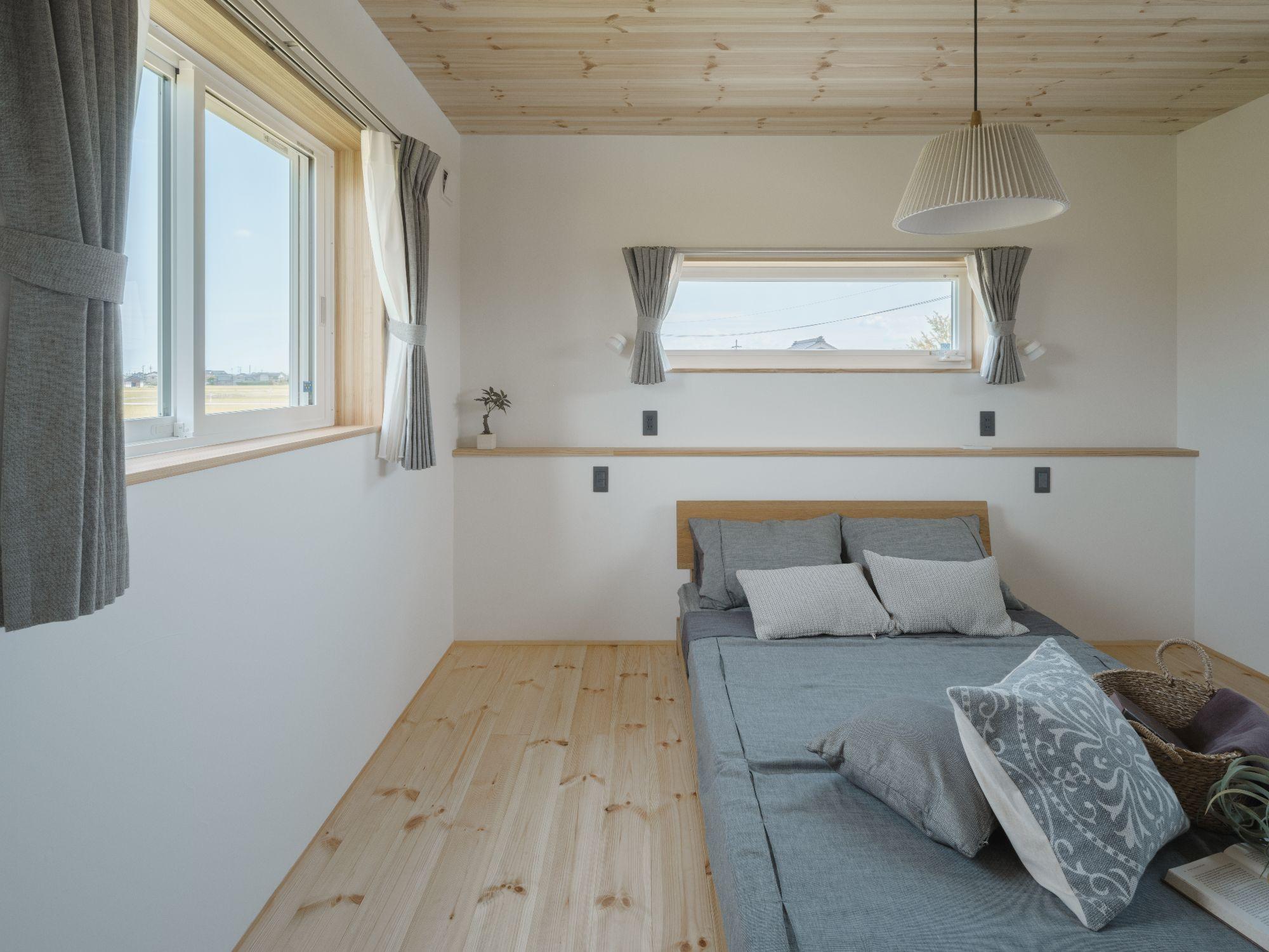 素足でも心地よく過ごせる無垢レッドパインのフロアや塗り壁を使っています。