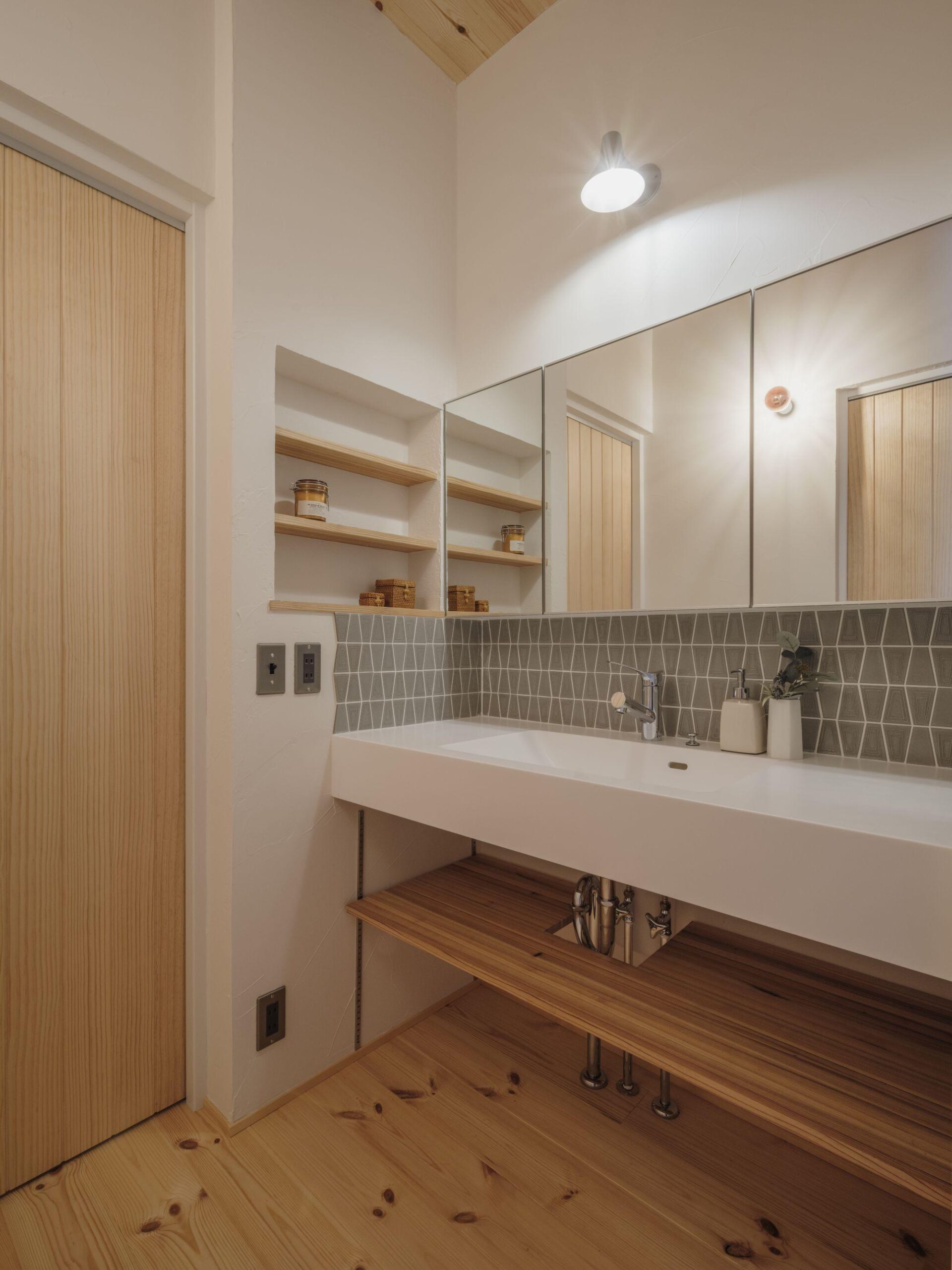 造作カウンターがあったり、タイルがアクセントになっていたり