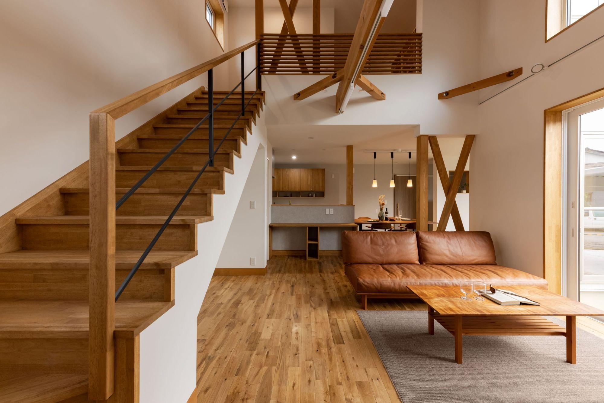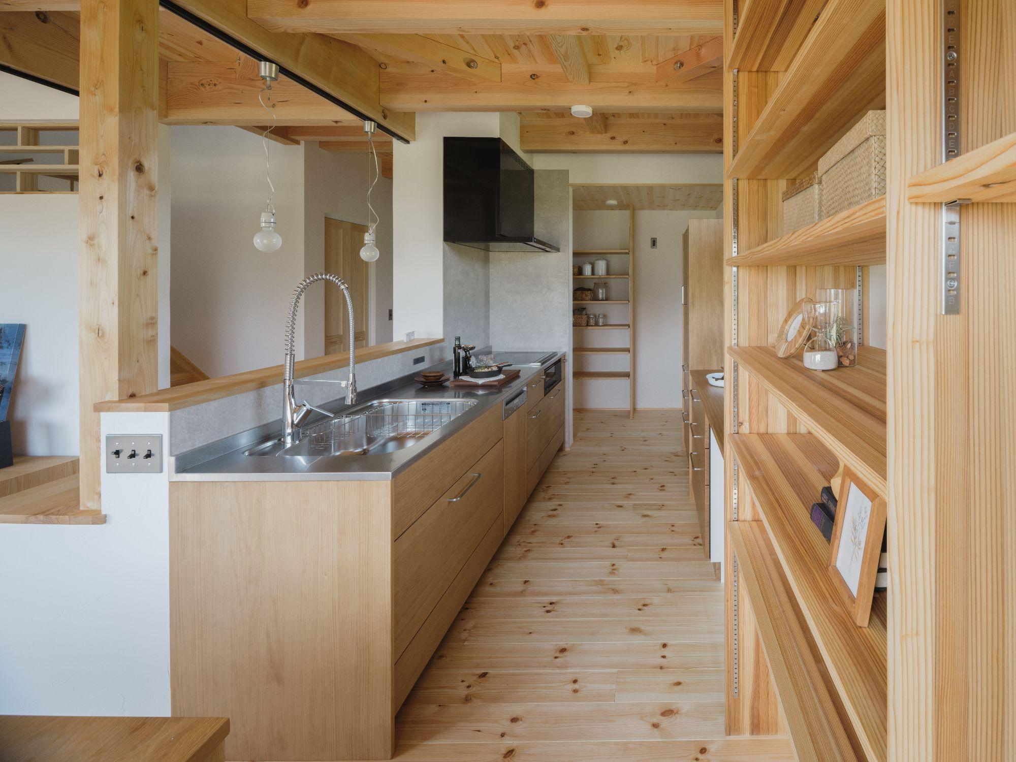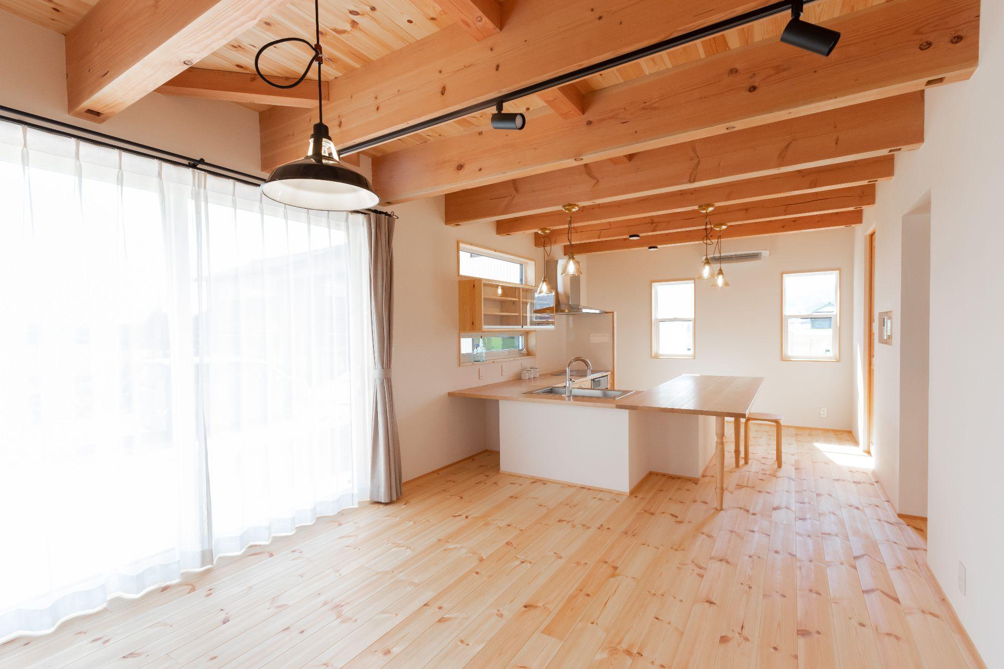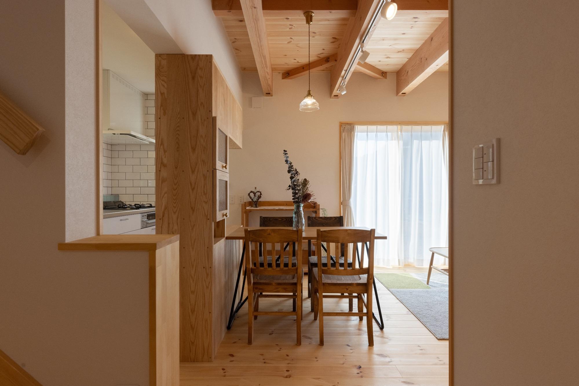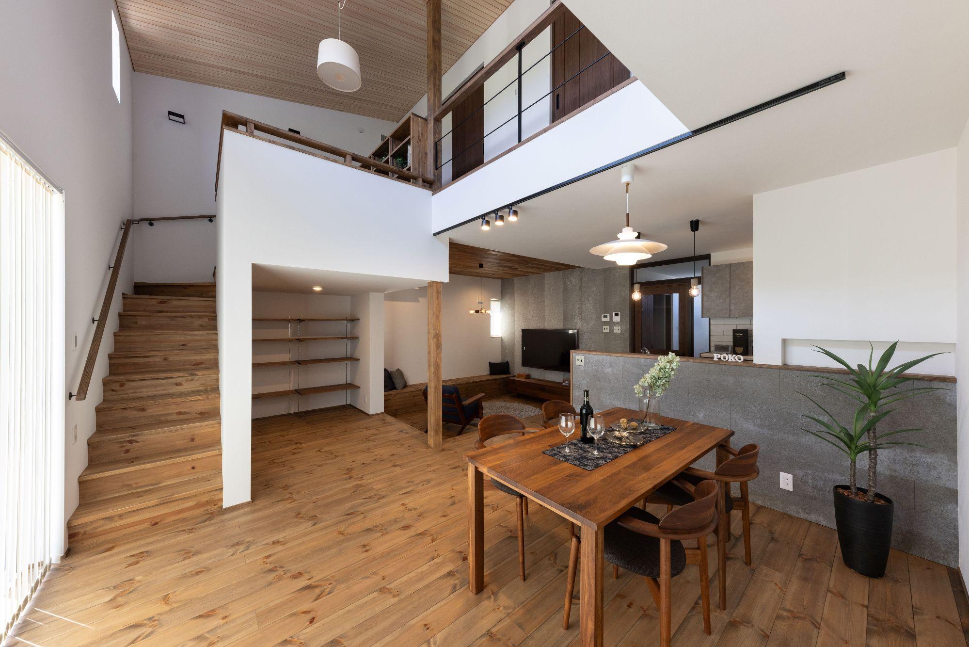 素足でも心地よく過ごせる無垢レッドパインのフロアや塗り壁を使っています。