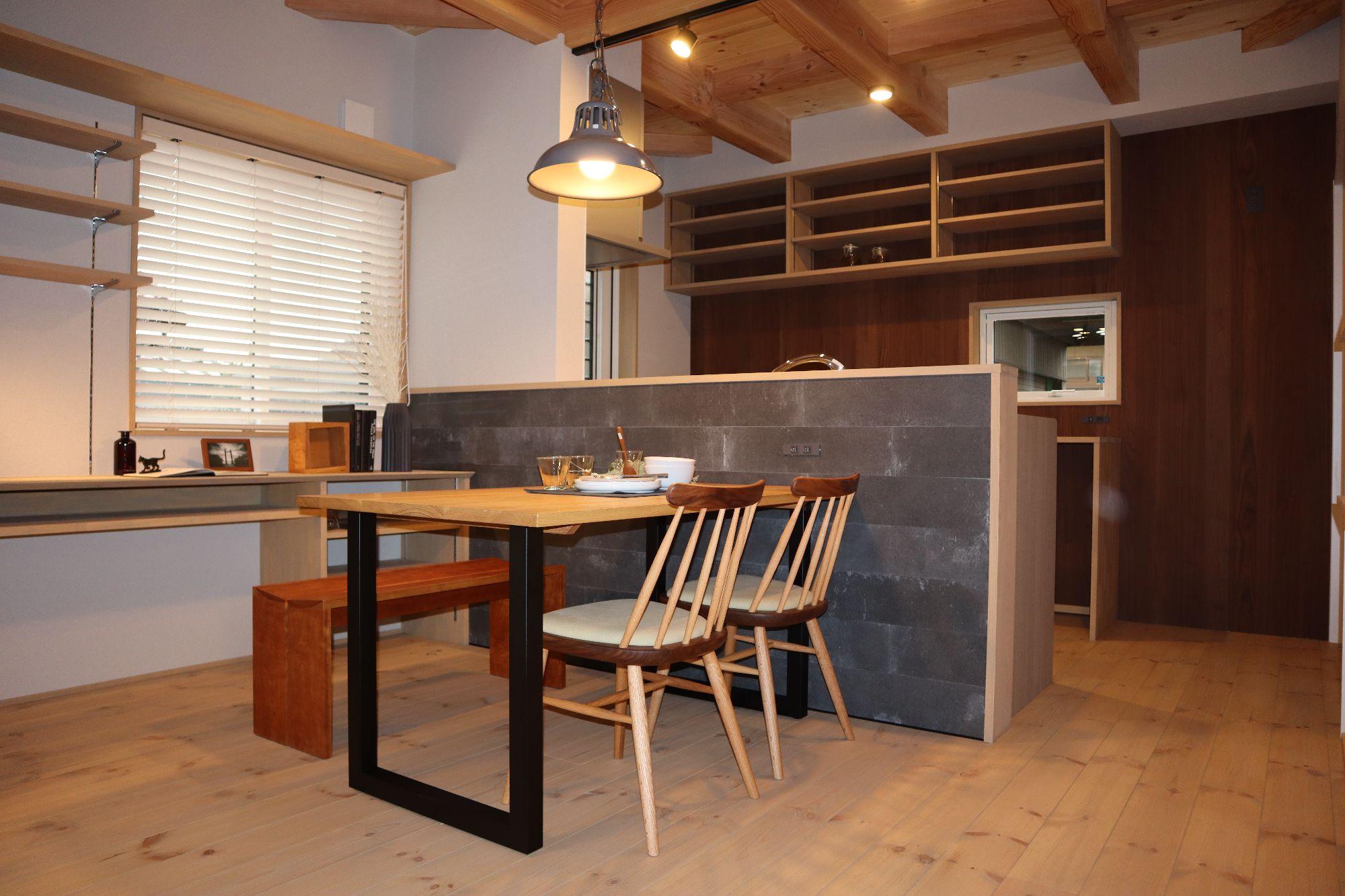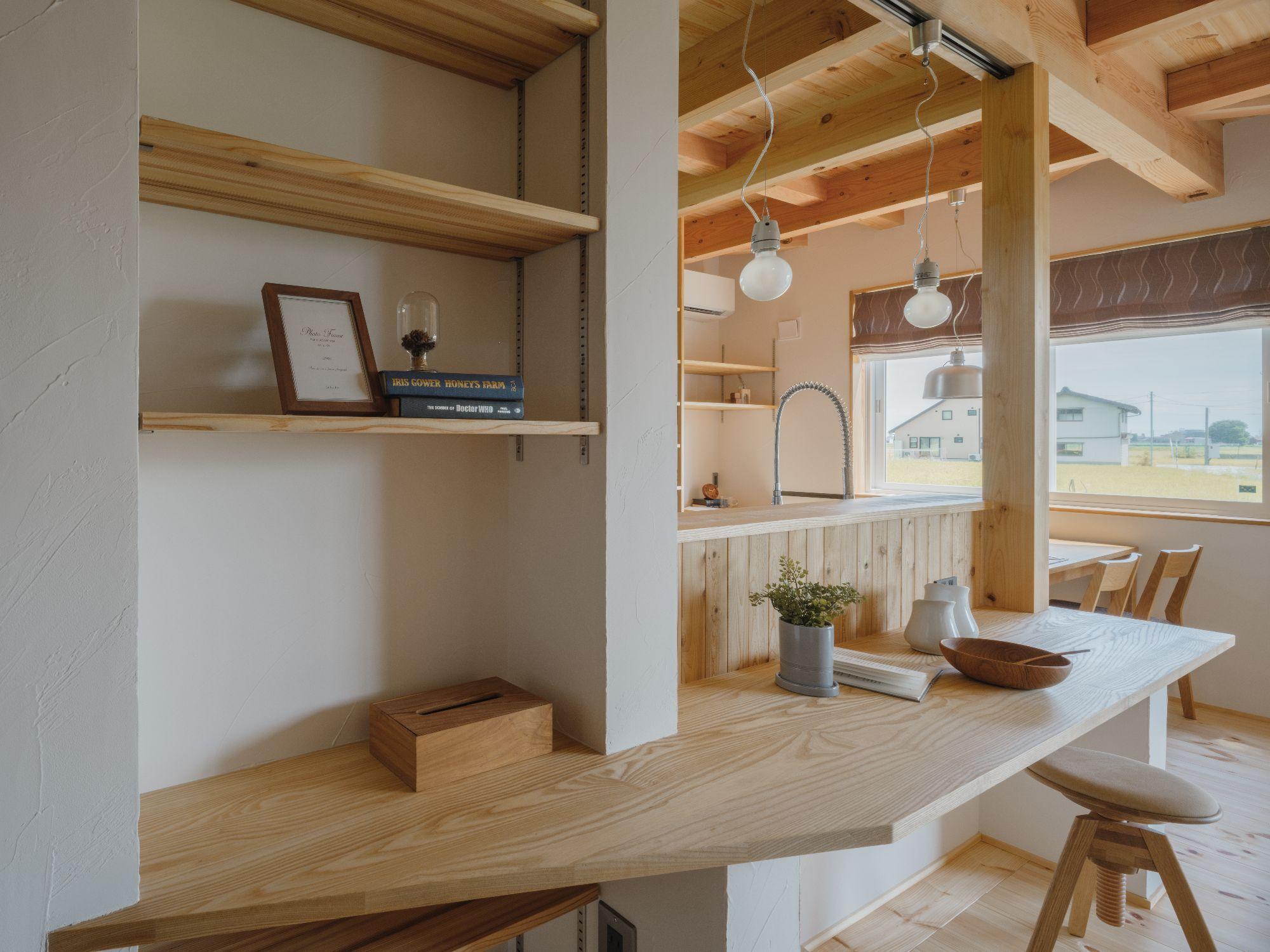 造作カウンターがあったり、タイルがアクセントになっていたり