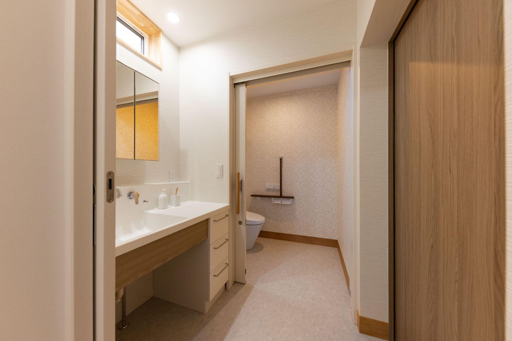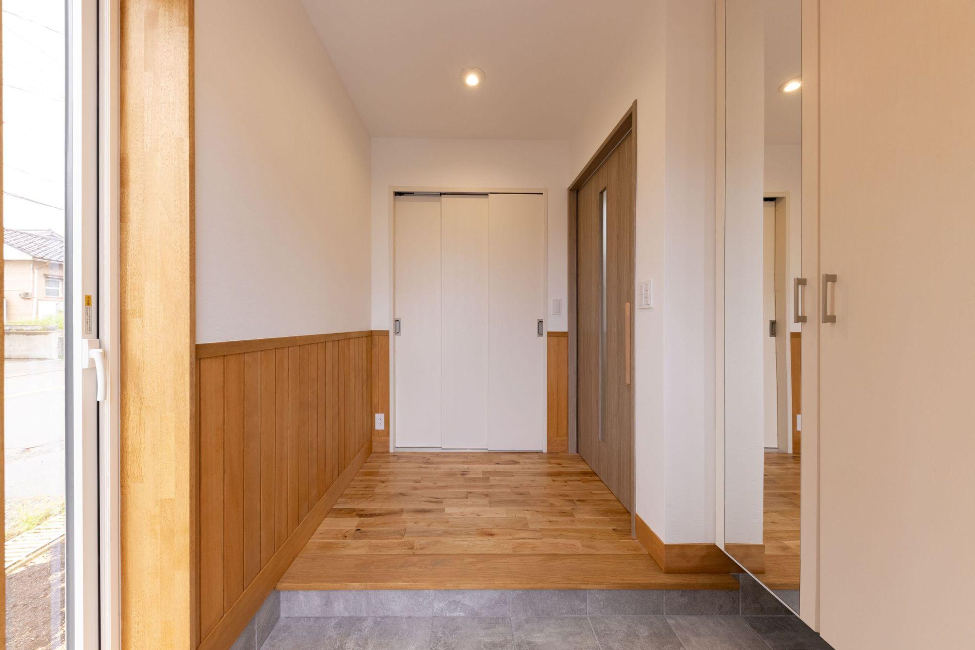 広めの扉や要に設けられた手摺など家族にそして誰にでも優しいお家となりました。